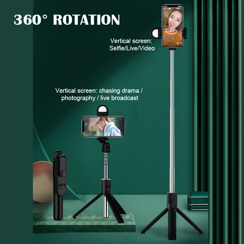 (SG Stock) Bluetooth Portable Selfie Stick Tripod Stand Selfie with Fill Light Phone Holder For All Phones 便携三脚架手机支架