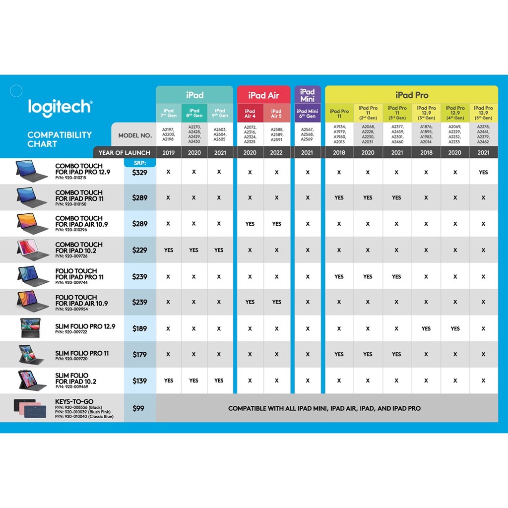 Logitech Slim Folio Bluetooth Keyboard Case For iPad 10.2" 7th, 8th and 9th Gen, Slim Style, Total Comfort