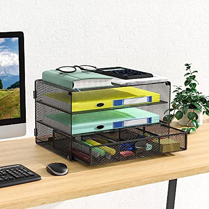 • Storage and Organizer: 3 stackable file trays and 1 removable drawer for sorting and storing. Provide a functional way to store your items. Perfect to put away your desktop goods for offices, home, school, college dorm room and more.