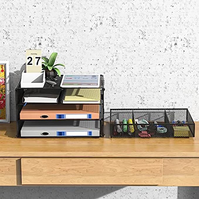 • Sturdy but Elegant: Made of high quality lightweight metal mesh with a solid metal base. Can serve your office supplies for a long time. The desk organizer acts as a decoration, and it is stylish and elegant in any interior.